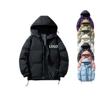 2024 Wholesale Custom logo Printed Winter Plain Coat With Hood Oversize Puffer Jacket With Hood Unisex for Men
